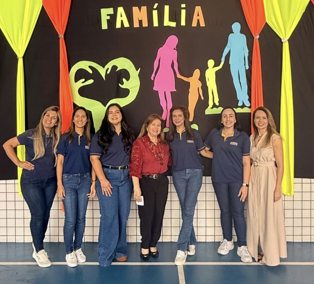 A diretora Regina Uliana Sarmento, do Centro Educacional Praia da Costa, ao centro, e a coordenadora pedagógica Rúbia Uliana, à direita, juntas com parte da equipe de professores do CEPC durante o “Sábado Familiar”. O evento reuniu alunos e suas famílias em uma manhã especial, repleta de afeto, integração e memórias afetivas. Um momento de celebração do que há de mais valioso: a família.