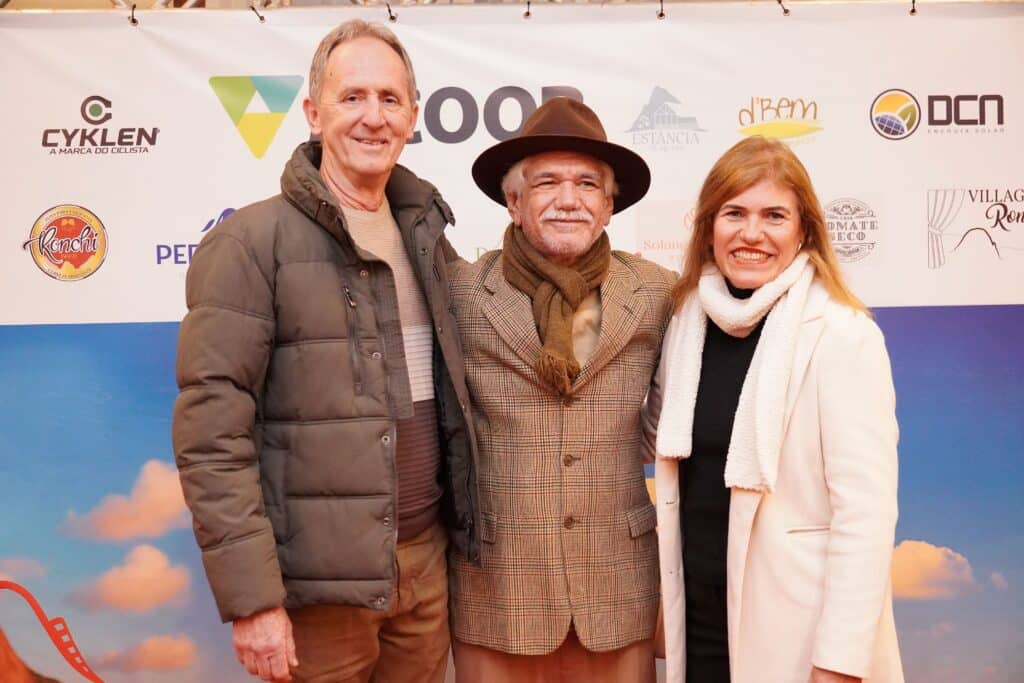 A 7ª edição do FestCine Pedra Azul reuniu celebridades e talentos em uma imersão cinematográfica nas montanhas capixabas. O ator Vinicius de Oliveira, eterno Josué de Central do Brasil, foi homenageado, assim como Jackson Antunes, que recebeu o Troféu Rota do Lagarto. Rodrigo Santos, ex-Barão Vermelho, fez show e deu palestra. Paloma Bernardi marcou presença na noite de gala, e os humoristas Chiara Pascotini e Marcelo Smigol garantiram boas risadas. O festival foi produzido pela Tower Filmes e teve cerimônias apresentadas por Priscilla Reis, Farid Sad e Enzo Ciolini. Na foto de Thaís Tomazelli, o gerente de Cultura de Domingos Martins, Werner Brusk, o ator Jackson Antunes e a secretária de Cultura e Turismo de DM, Maria Penha Quinteiro.