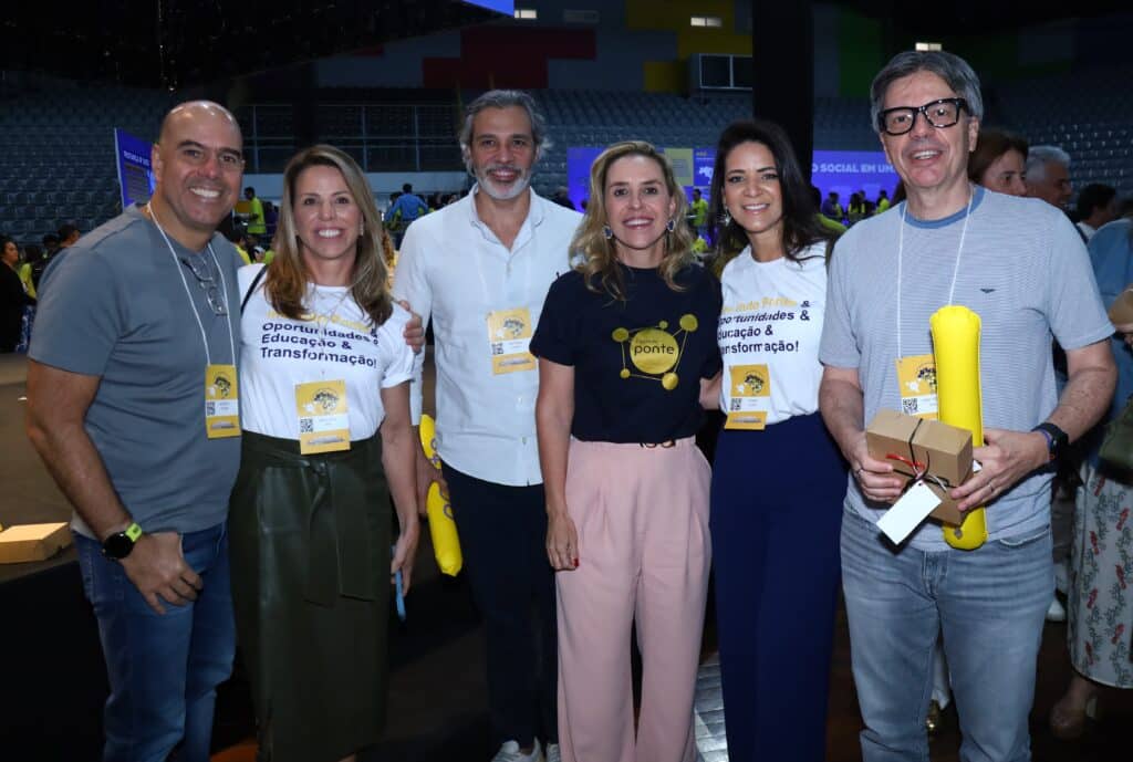 Com brilho nos olhos e emoção à flor da pele, o Instituto Ponte celebrou 11 anos de histórias transformadoras no último sábado (27), na Escola Americana de Vitória. Na foto, a fundadora Bartira Almeida posa ao lado de conselheiros e parceiros da ONG: Rogério Salume, Ana Lúcia Lima, Antonio Toledo, Gisele Alves e João Cesar Lima. Uma noite marcada por gratidão, superação e muitos reencontros.