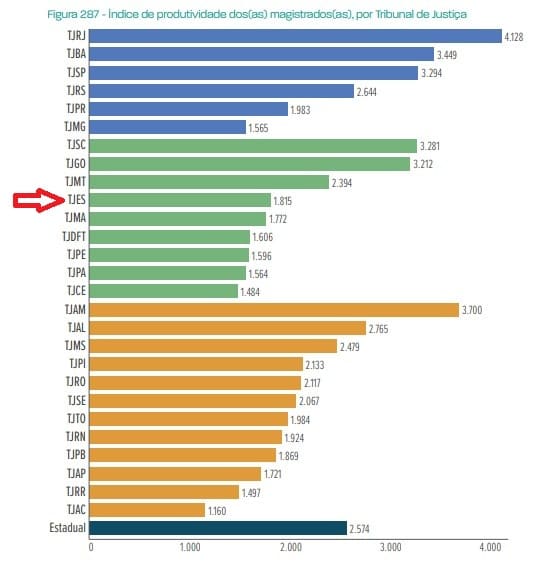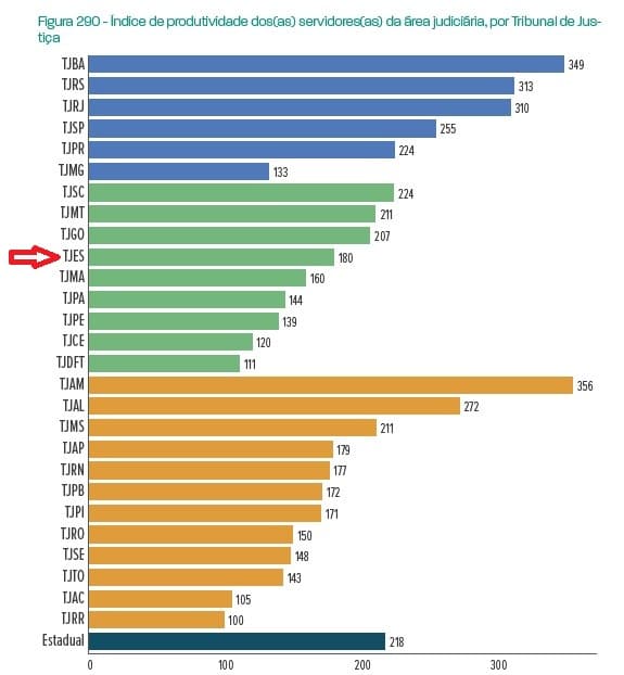 No ranking dos 27 tribunais estaduais, o TJES fica em 18º lugar. Entre os 9 de médio porte, tem o 4º melhor resultado.