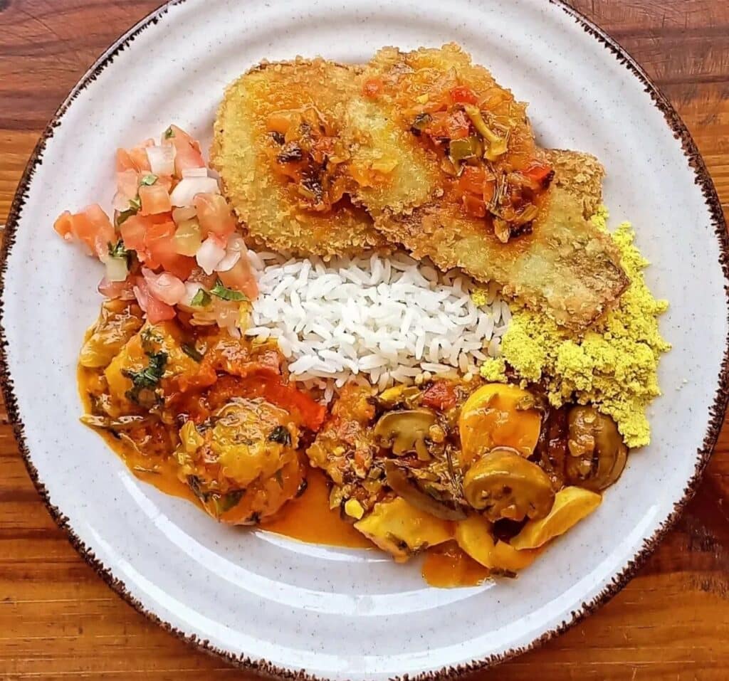No Dia da Moqueca, celebrado nesta terça-feira (30), o Mãe Divina, restaurante vegano localizado no centro de Vila Velha, irá servir a famosa iguaria na versão com ingredientes sem origem animal. A moqueca é de palmito com cogumelos frescos, suculenta, leve e inacreditavelmente parecida com a versão tradicional. Ela vem acompanhada de empanadinho ao molho escabeche, lâminas de bananas grelhadas no melado, farofa de legumes e castanhas no alho, vinagrete e arroz.