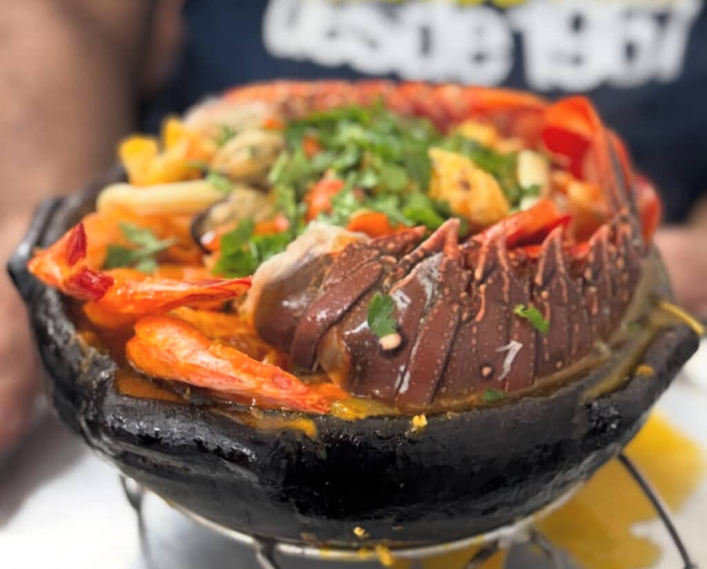 Moqueca mista (à moda do PA): badejo, lagosta e mariscos
