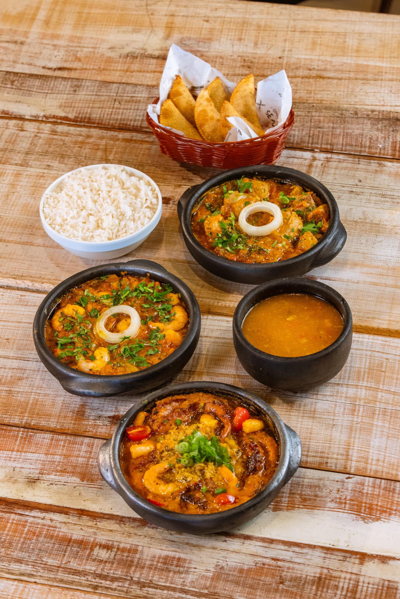 Para quem prefere camarão como protagonista, a moqueca pequena custa R$ 158 para duas pessoas e R$ 235 para três. A versão VM sai a R$ 210 e R$ 326, enquanto a VG custa R$ 285 e R$ 427. Há ainda a opção de moqueca de sururu, mais em conta, por R$ 99 (duas pessoas) e R$ 148 (três pessoas).
